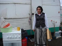 ロマ人の一族は30家族が馬蹄形にキャンピング・カーを並べ、その中央が広い庭になっていた。婦人や子供たちそして仕事をする男たちがそれぞれ集まって動いている。 女性たちも別に集まってなにやら話していた。