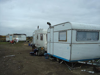 私は彼らにまた来るからといって一人づつ握手をしてロマ人キャンプを後にした。クリストフ氏は500メートほど離れた別の地区にやはりロマ人キャンプと同じようなキャンピングカーに住んでいた。キャンピングカーはここでは左右一列づつに平行させて並べてあった。大道路からすぐに入った右側の列の最初の古ぼけたキャンピングカーがクリストフ氏の住居であった。