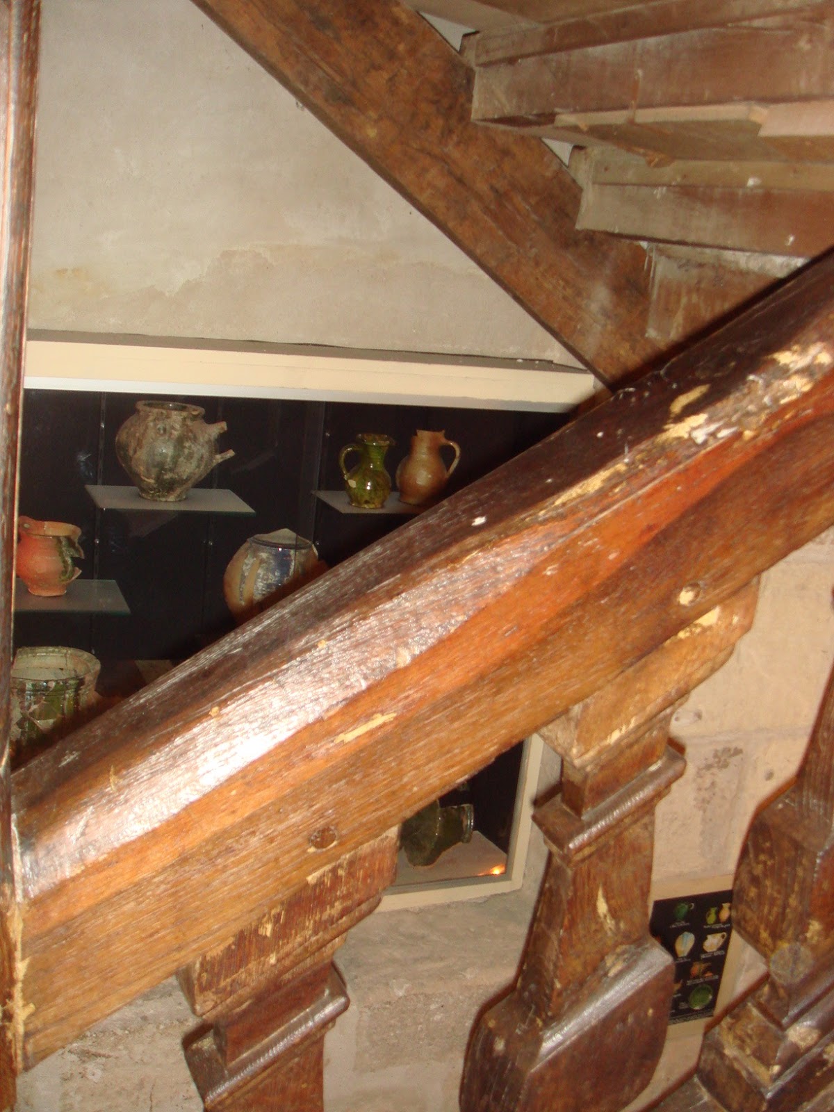 またルネサッンス時代の左付け欄干が彫刻された階段があるが。その壁に埋めこみ式の棚があって、この建物から出てきた18世紀ごろのルナンの絵にでてくるような壷や食器が陳列されている。