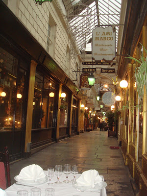18世紀末から19世紀にかけて流行したパッサージュ(passage)は鉄骨とガラスの天井で覆われた屋根に庇護されていて悪天候でも深夜でも当時の荷馬車の喧騒に邪魔されることもなく安全に歩けることからパリの人々の人気を集めた。パッサージュには様々な種類の商店が並んでいた。現在は流行から廃れ過去の遺物のような感じがするがそれでも古いパリを偲ぶ旅行者やパリ人が好んでこのタイムトンネルのようなパッサージュを利用している。