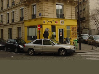 わたしが訪ねたのは月曜日の午後であった。アベスの地下鉄付近には昼からたむろする若い移民の青年たちが大勢いて驚かされる。少し怖いくらいだ。しかし会場付近は地下鉄の駅よりもずっとモンマルトルの丘の中腹にあって、公園をはさんで小学校なのだろうか?子供たちの喚声が聞こえていた。モンマルトルの丘の上のほうは次第に住宅街になっているようだ。アフリカの移民労働者が衣服製作のアトリエを構えている小さな店が並ぶ通りが印象的であった。道路から中が覗ける。ミシンを踏む青年とモデルなのだろうかアフリカの衣装をまとった頭に水色の布のかぶり物をした女性の姿があった。不思議な光景だ。