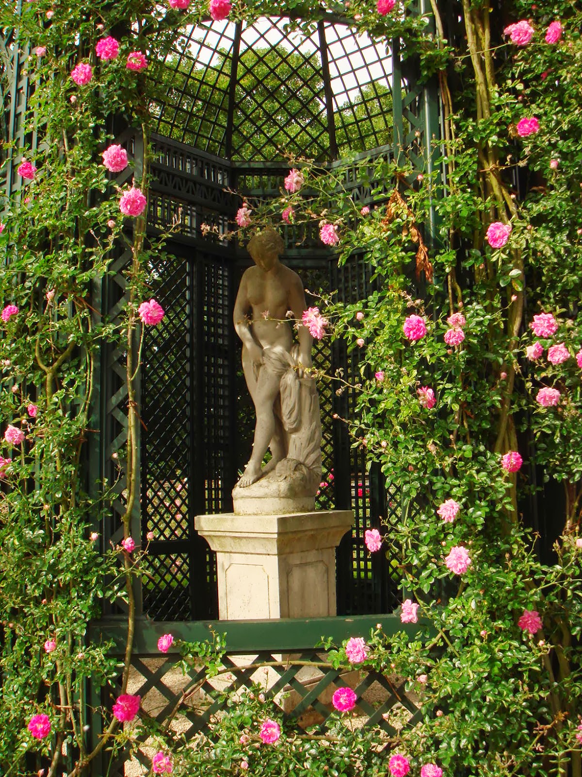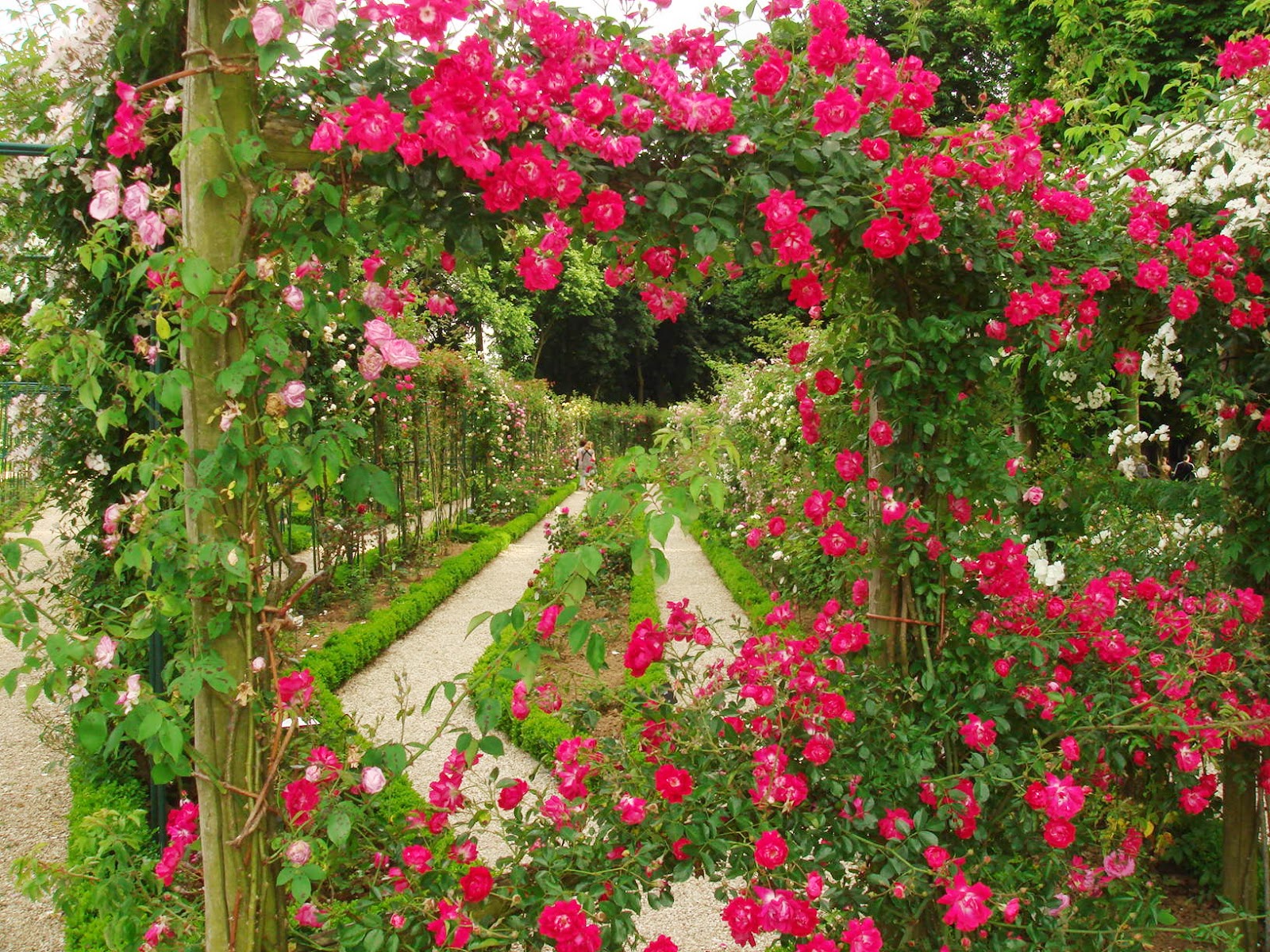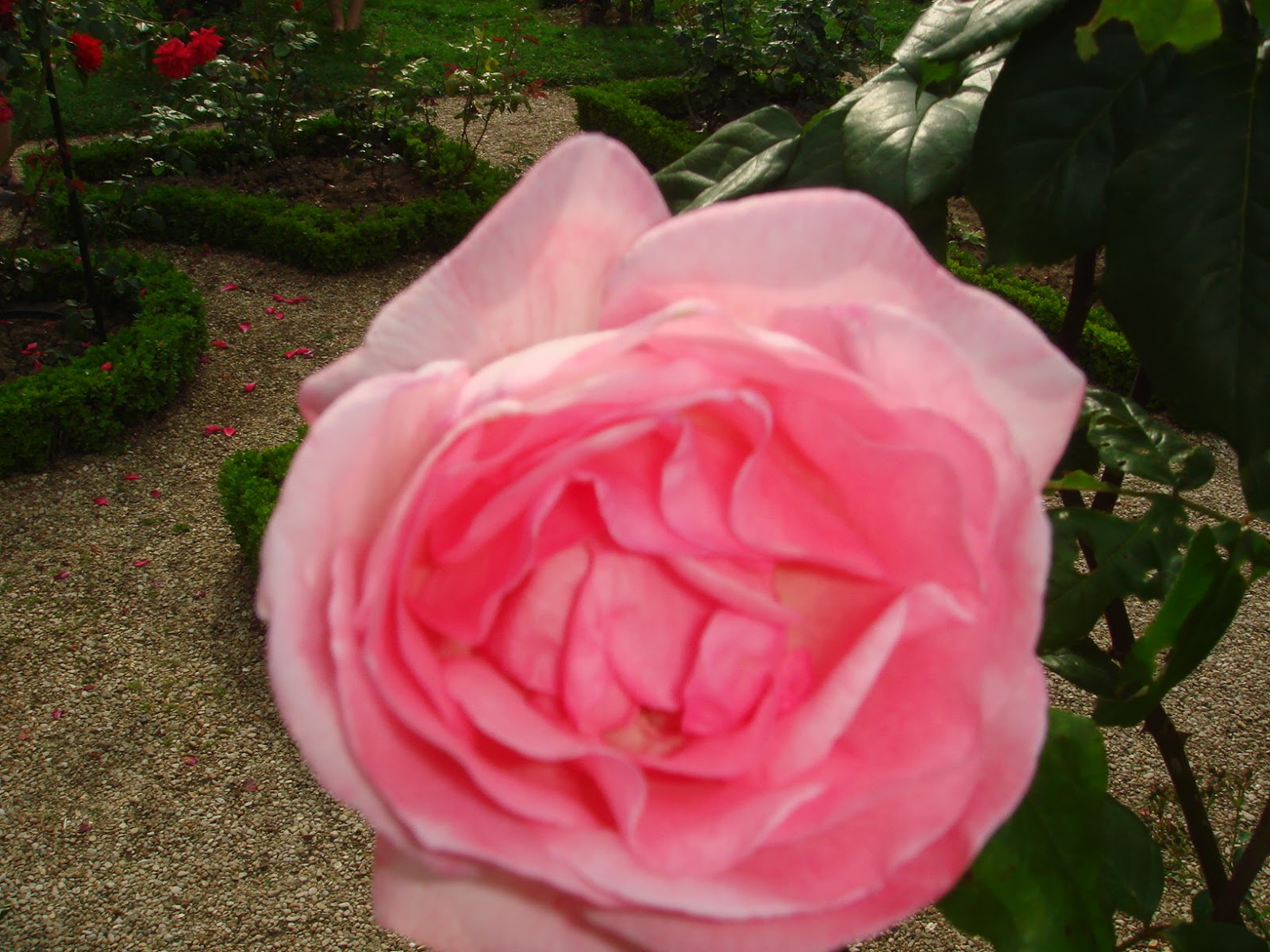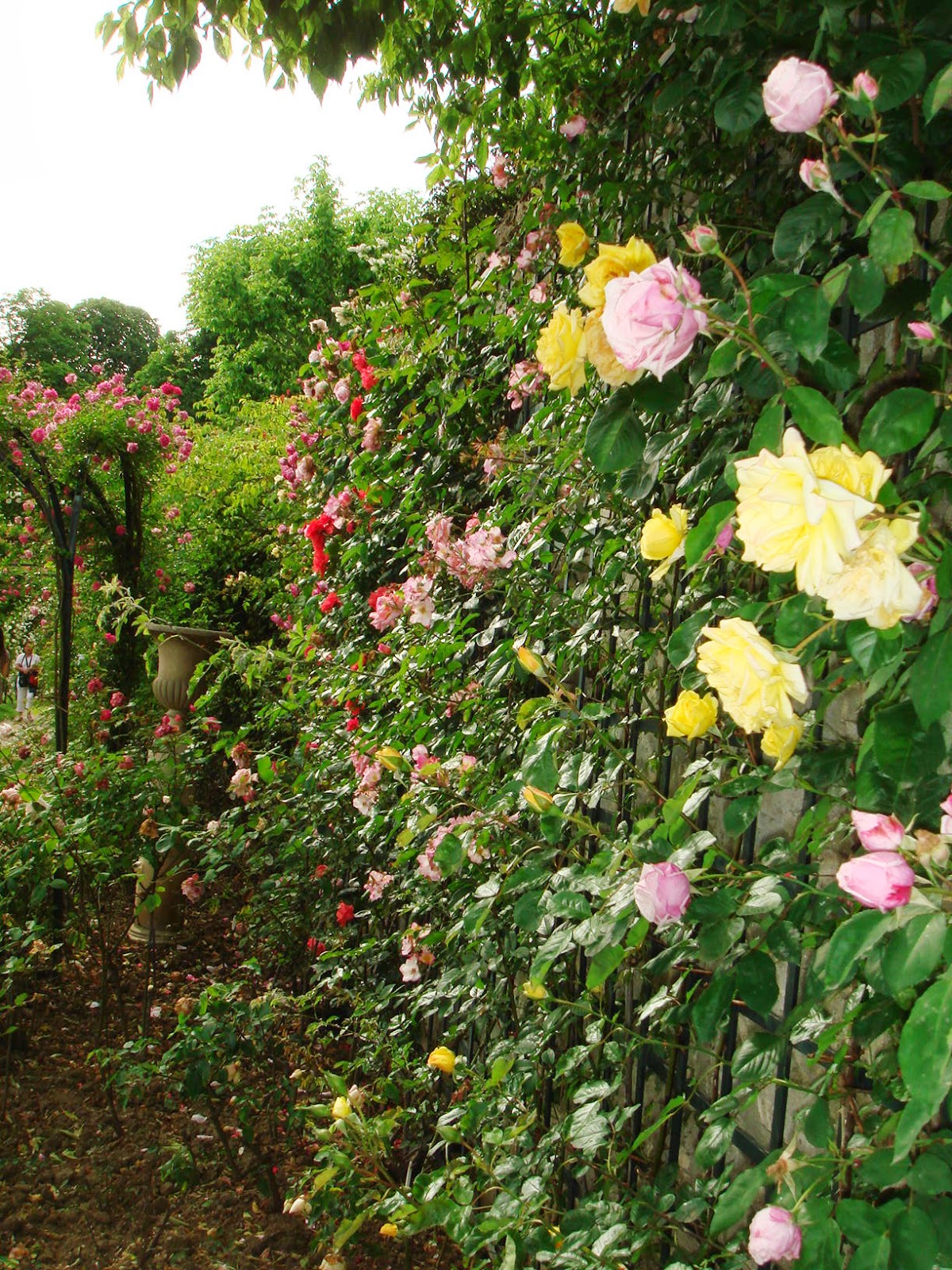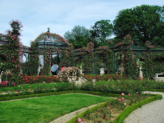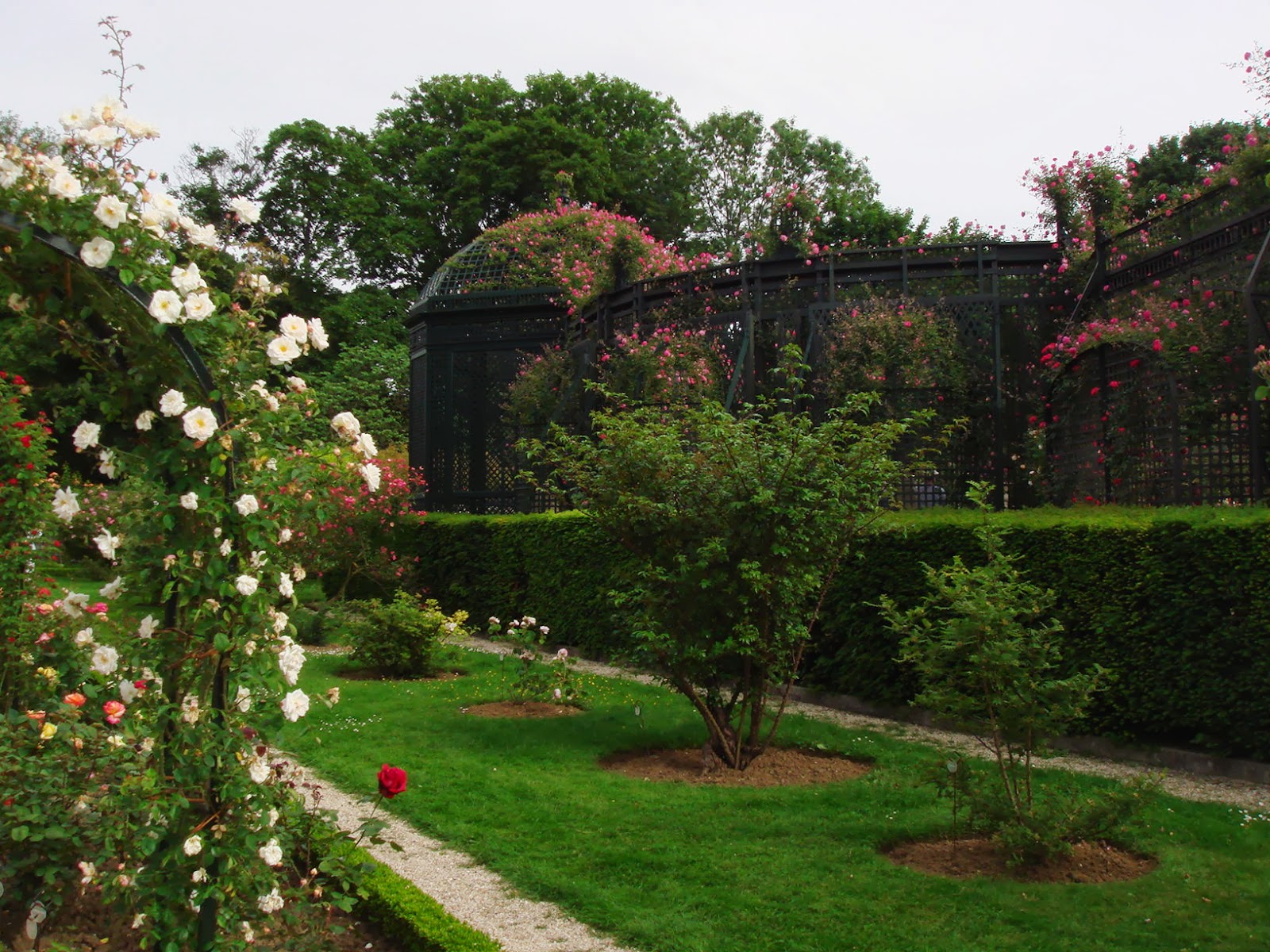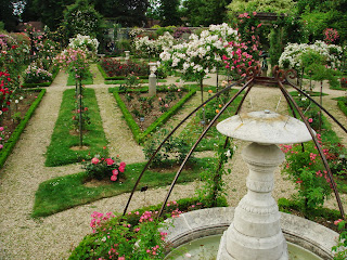 幾筋もの直線の小道と一種迷路のラビラントを緑のツゲの植え込み木が形ちどっていて、その中にバラが植わっている。ツゲの青臭い匂いがバラの香りを引き立たせていることに気がつくのにはそう時間はかからなかった。バラの花の香りが素晴らしいことを初めて知ったことはここに来た大きな収穫であった。