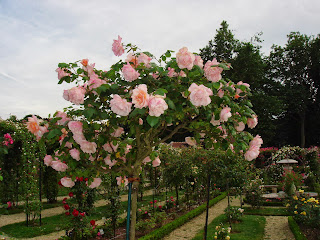 「バル・ドゥ・マルヌ県立バラ園」を訪問した。バラ園はパリ南郊外の渓谷を見下ろすライレ・ローズ市の丘の上にあった。入場券が必要で大人3ユーロ。行列ができる混みようで20分待った。待ちながら順番を確保しつつ周囲を眺めているとなんともアジア系の人々が多い。私もそうだが20%は確実にいる。この周辺にはアジア系の人々が多く住んでいるのかもしれない。そして結婚式の後でやって来たと思われるアジア人カップルが数組いて写真を撮っていた。