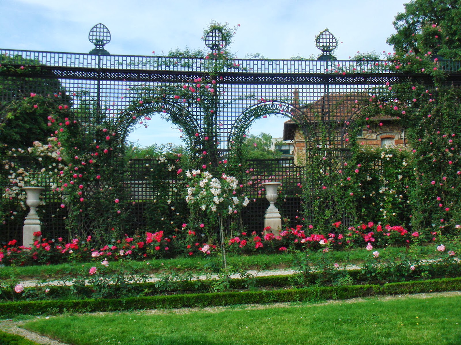 同バラ園はフランス最初のもので1918年に開園したがその基は19世紀末(1894年)にJules Gravereauxが築いている。この「バル・ドゥ・マルヌ県のバラ園」1.7haには12000本、3300種のバラがある。外国のバラ、インド・中国・ペルシャ、日本のもあった。フランスのバラ。現代のバラ。野生のバラ。昔のバラとオリエントのバラを掛け合せたものもある。またコレクションされたバラ、マルメゾンのバラなどもある。歴史的人物の名前を冠したバラ。18世紀までまだ知られてなかった旧大陸のバラのコレクション(Le jardin des roses galliques)もあった。