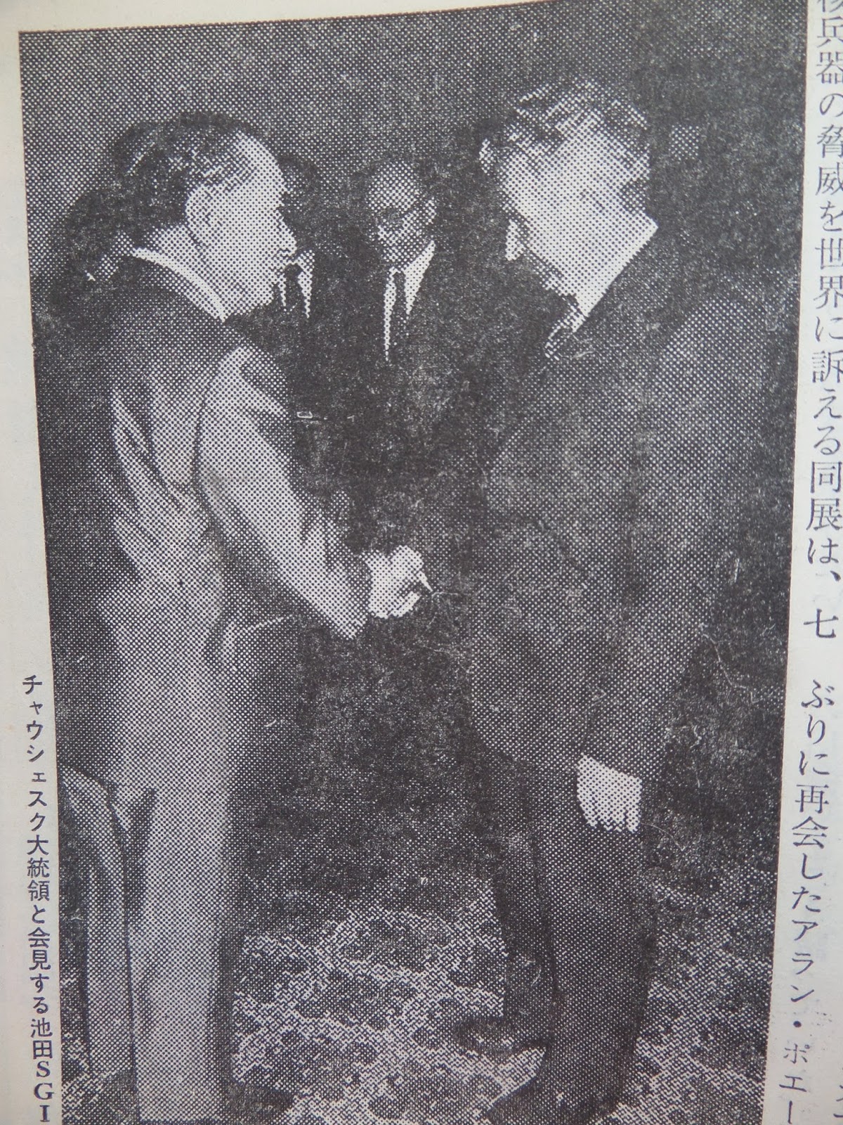 1983年6月8日午前中に池田大作インターナショナル創価学会(SGI)会長はルーマニアのニコラエ・チャウシェスク大統領を官邸に表敬訪問し60分に渡り会談したと、「SGI国際平和グラフ」(1983年フランス語版)にはある。