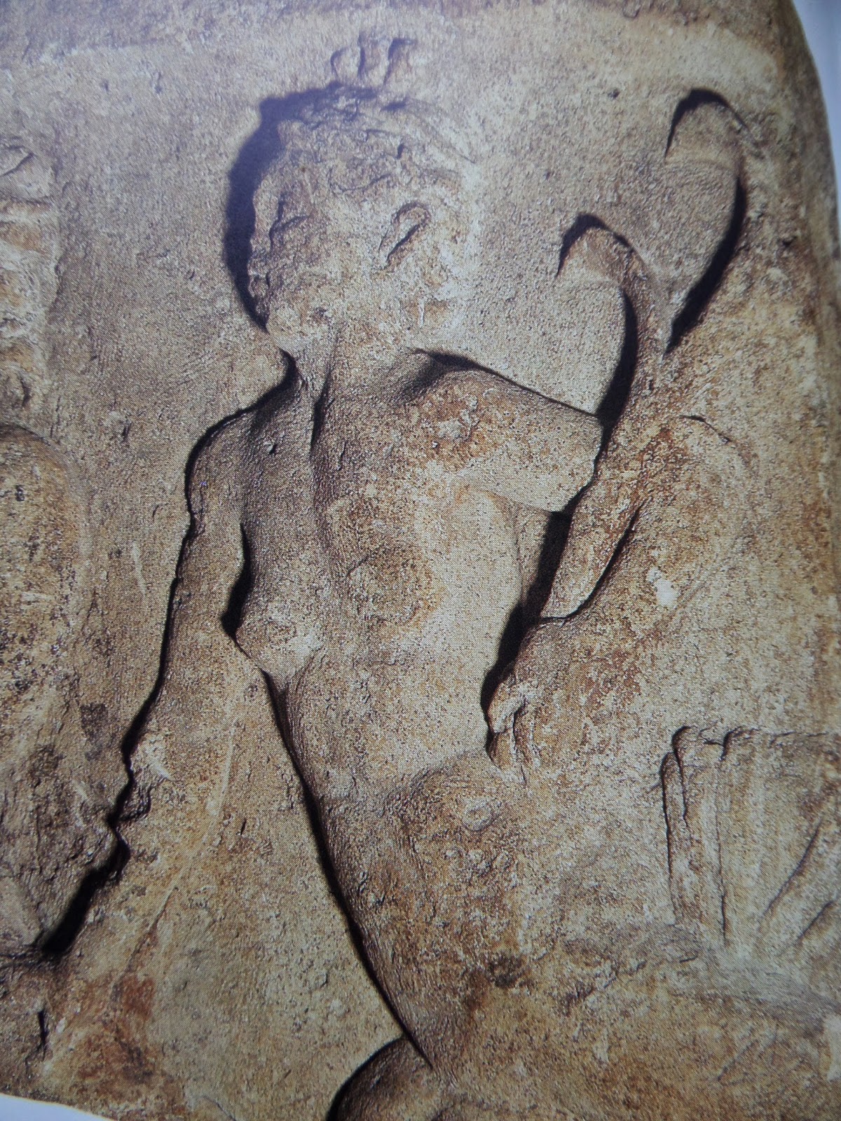 ブロック石材などは他の建築に再利用するために持ち去られたようだが、彫像は砂の中に埋もれて保存されていた。彫像には赤・黄・緑などの彩色が施されていた跡がわかるという。