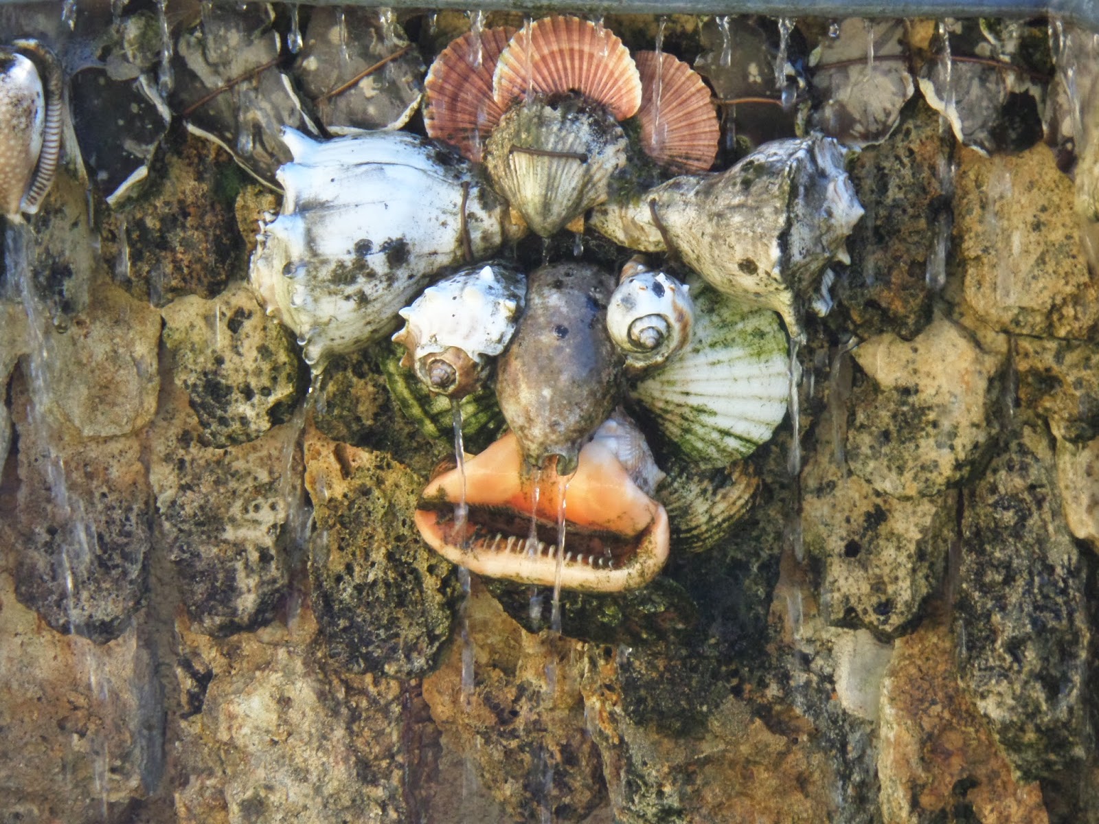 | 北側の庭園で貝殻を使ったもので岩との調和もある。 (写真撮影は筆者) |