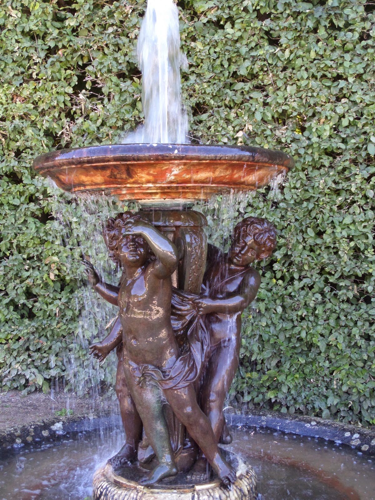 | 北の庭園で、奥はホテル・トリアノ。怪獣が噴水の水で生きているようだ。 (写真撮影は筆者) |