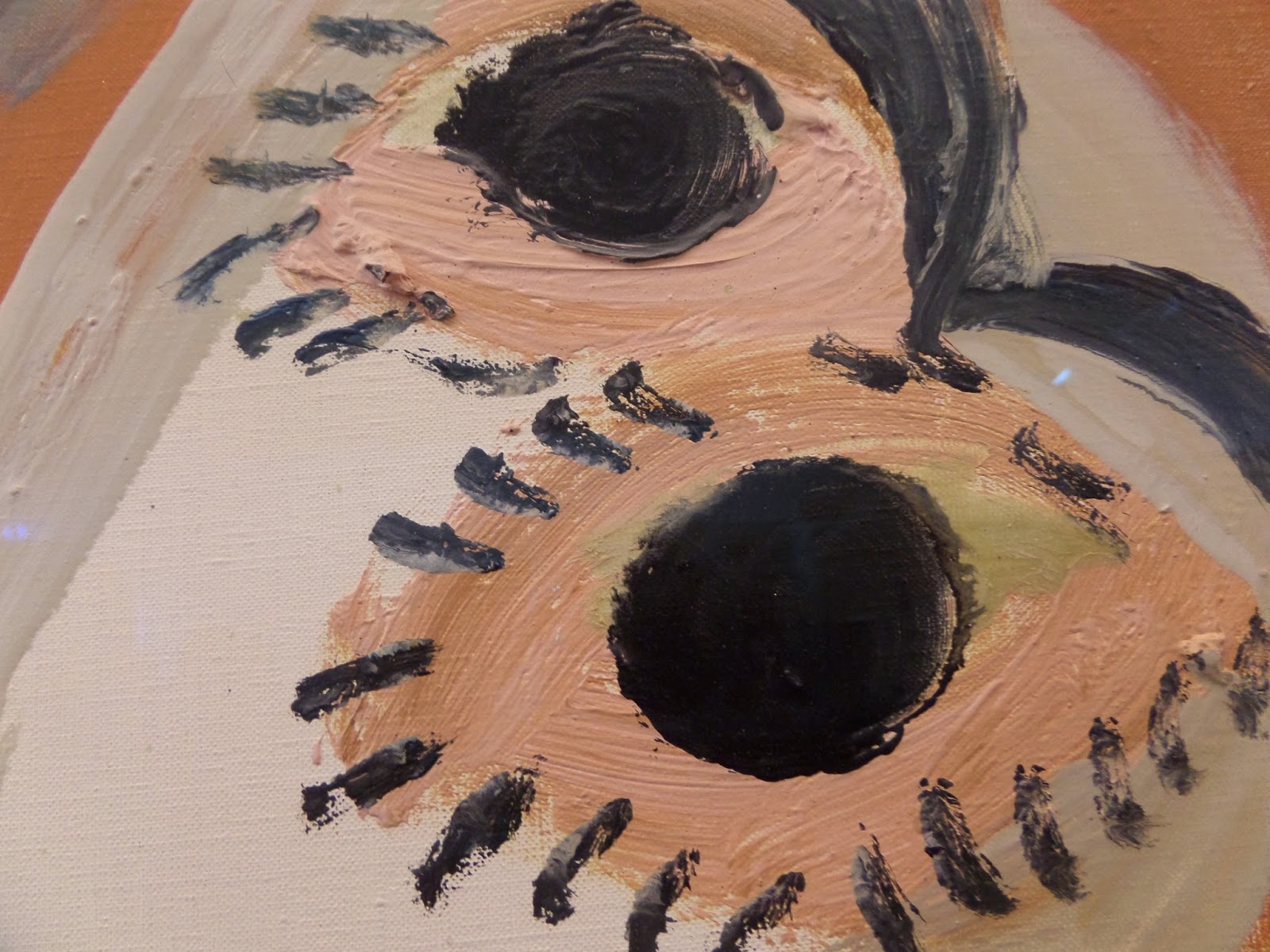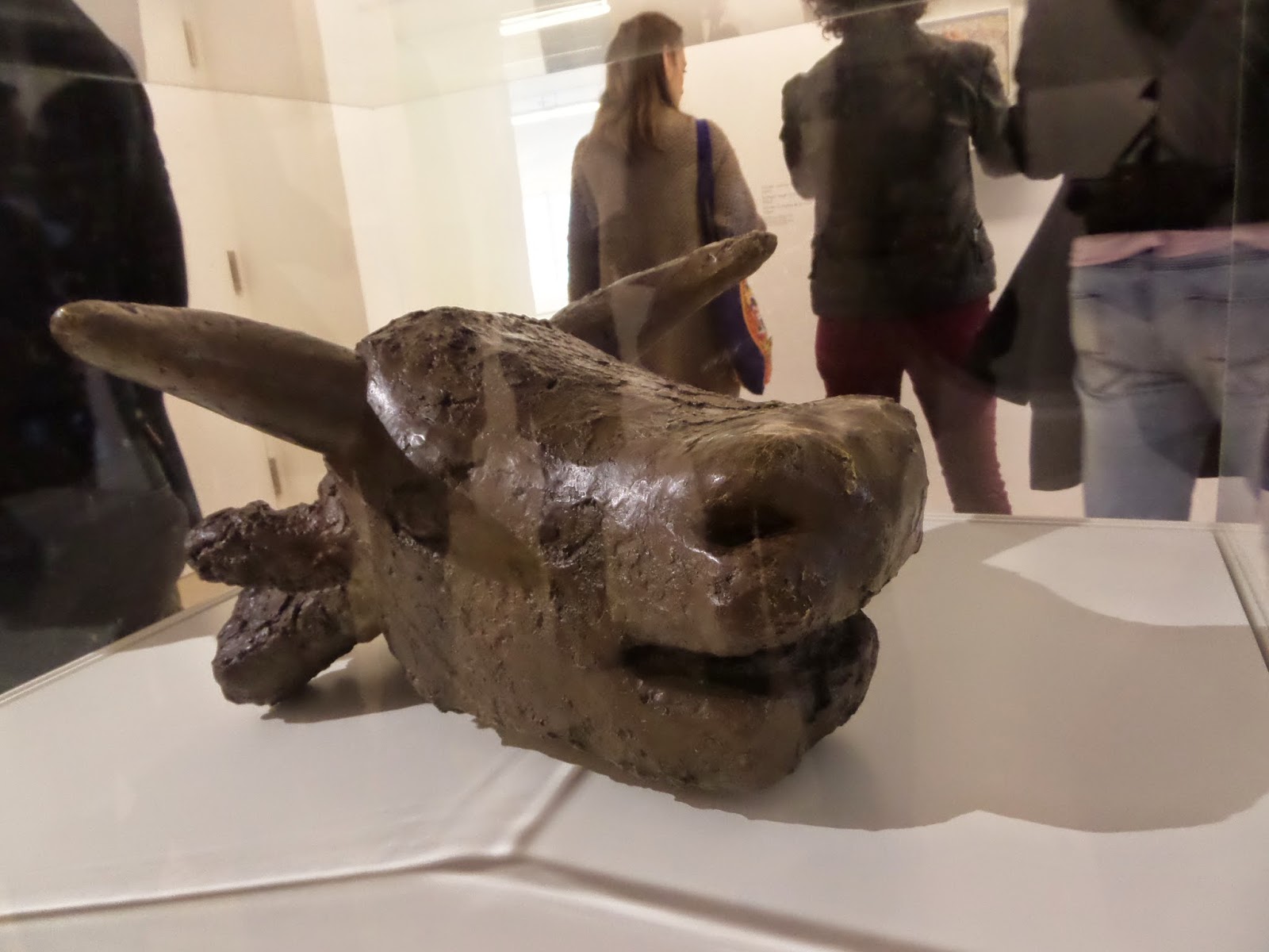 このヤギを抱いた人の彫刻と、骸骨と皿の上に乗った目の絵(下に掲載)の二つだけが、小さな薄暗い部屋に置かれていた。暗い時代の絵ということか。