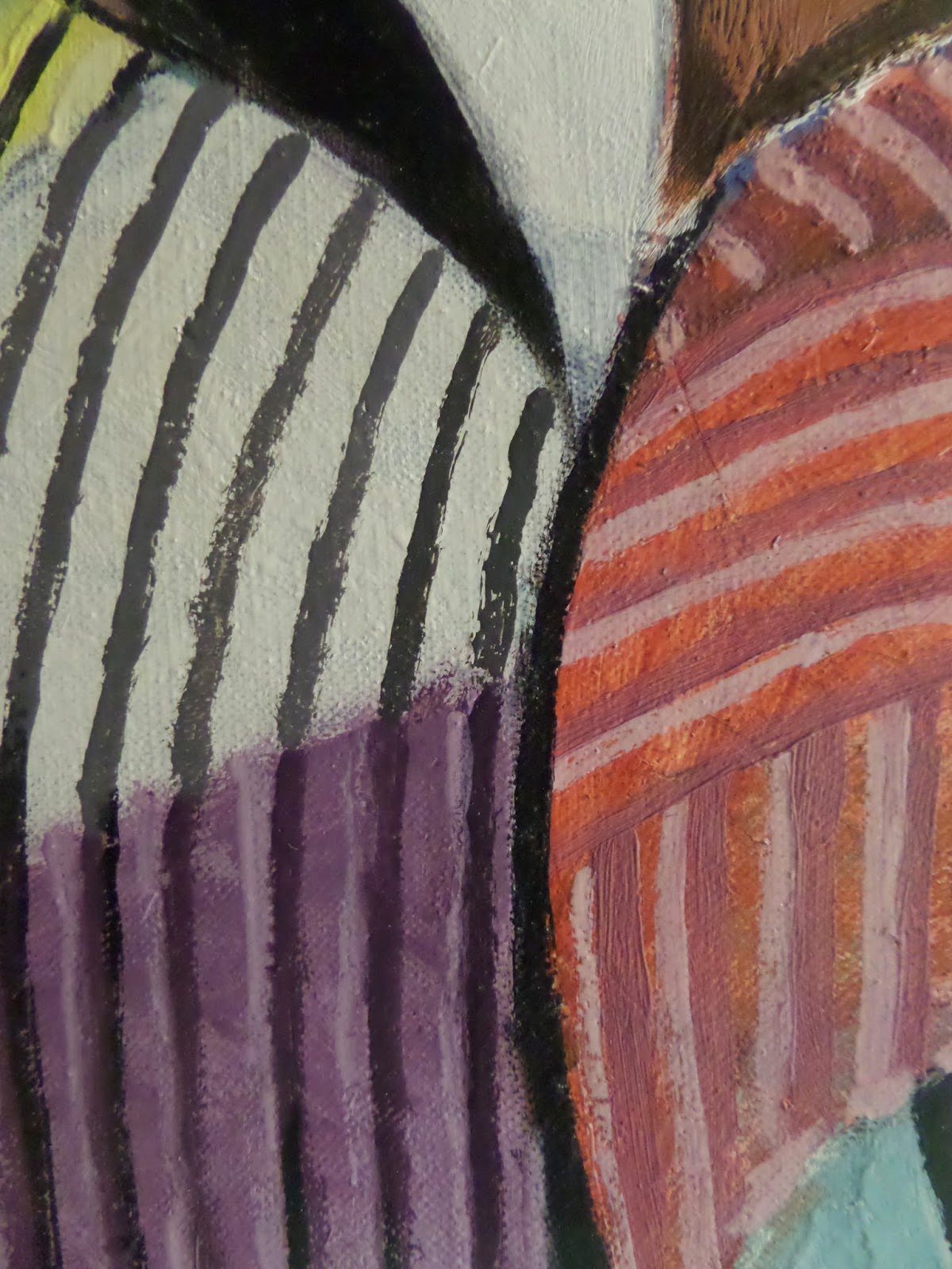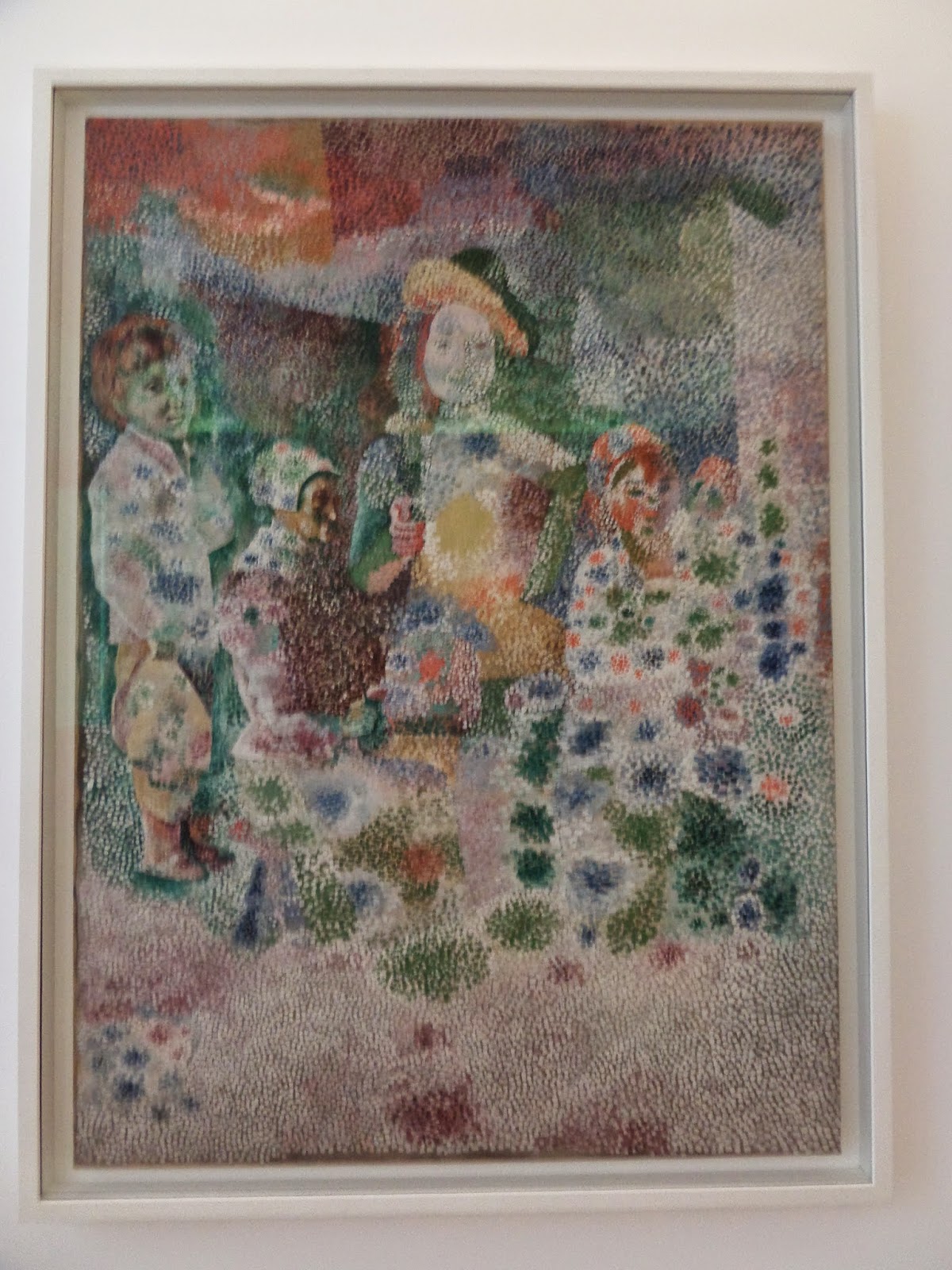 母と子供の絵。アフリカのマスクの影響が感じられる。このような色の配色は印象派などよりも精神世界の不思議な神秘性が浮き出てくる。ある意味では中世的な色使いとアフリカ的な形の原始性に頼っている絵でもあるかもしれない。