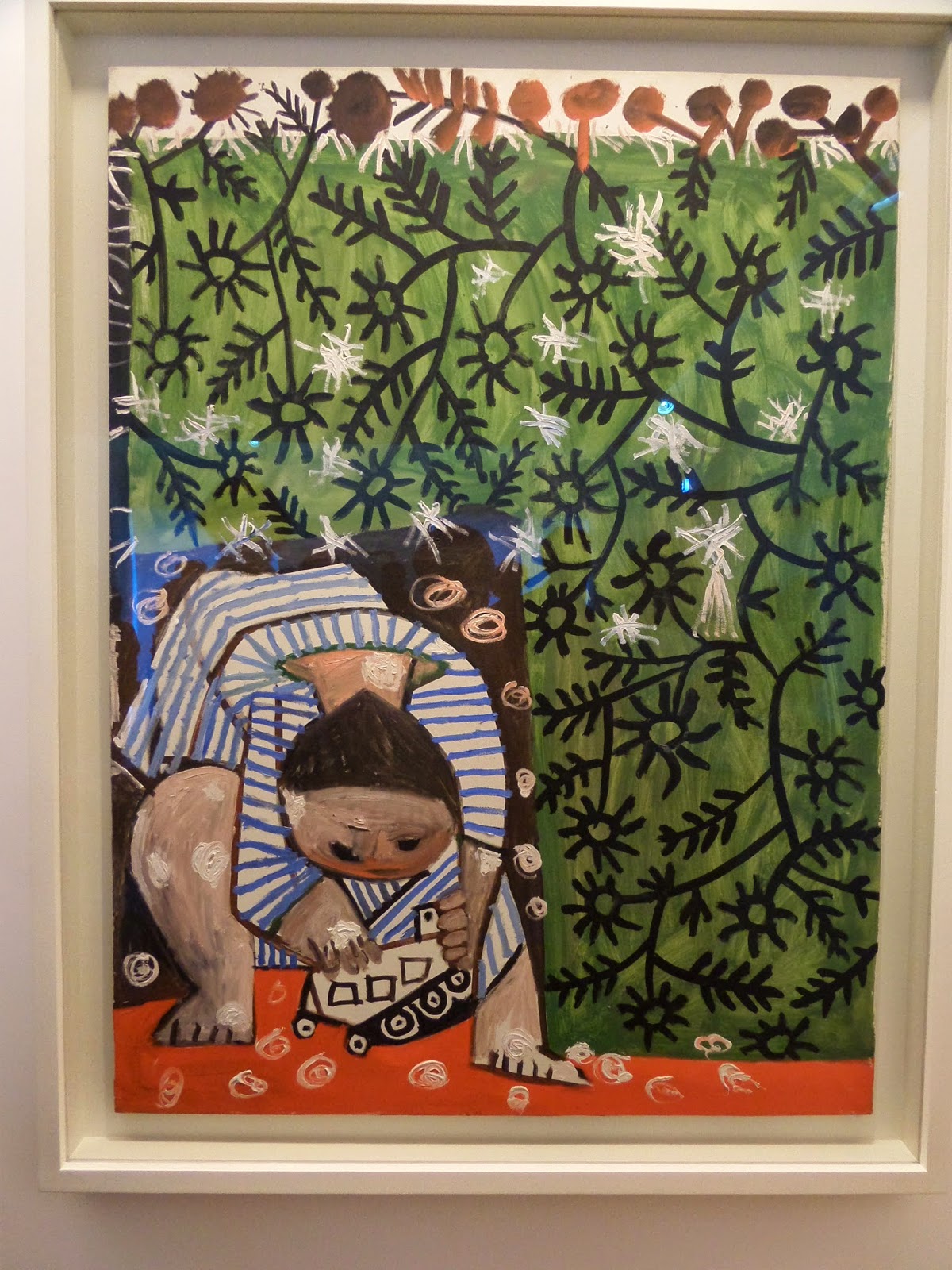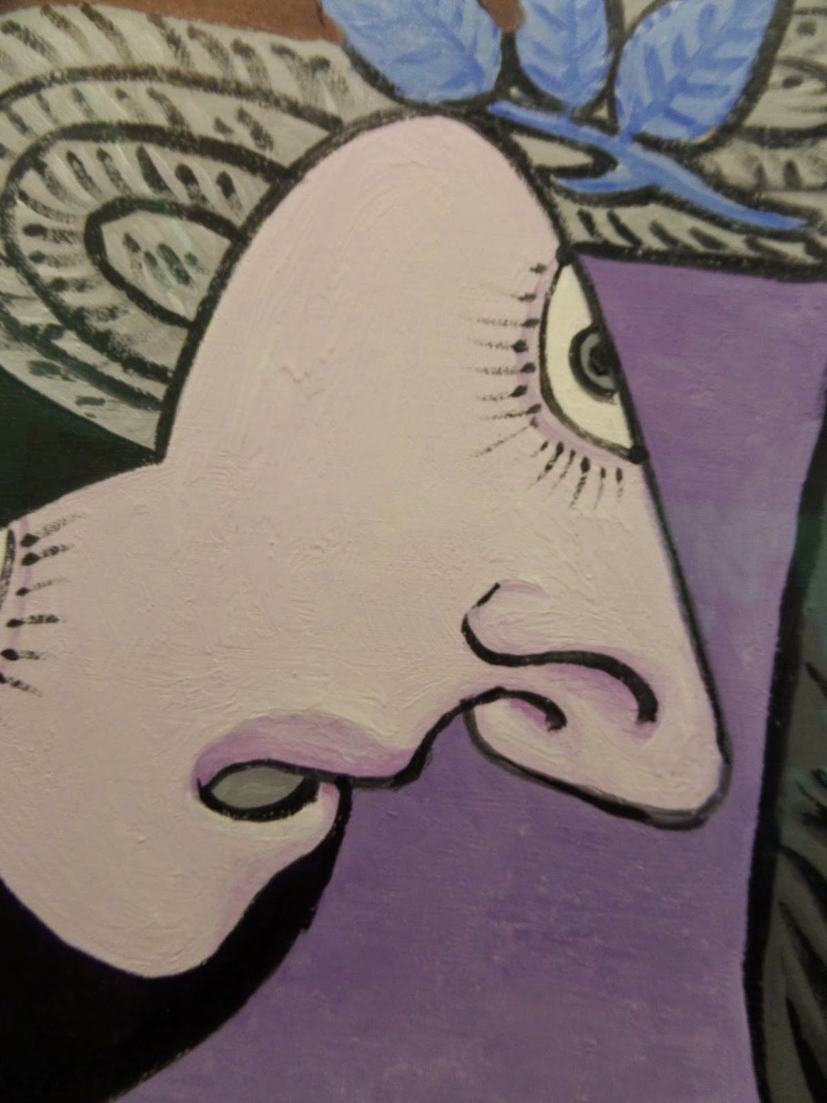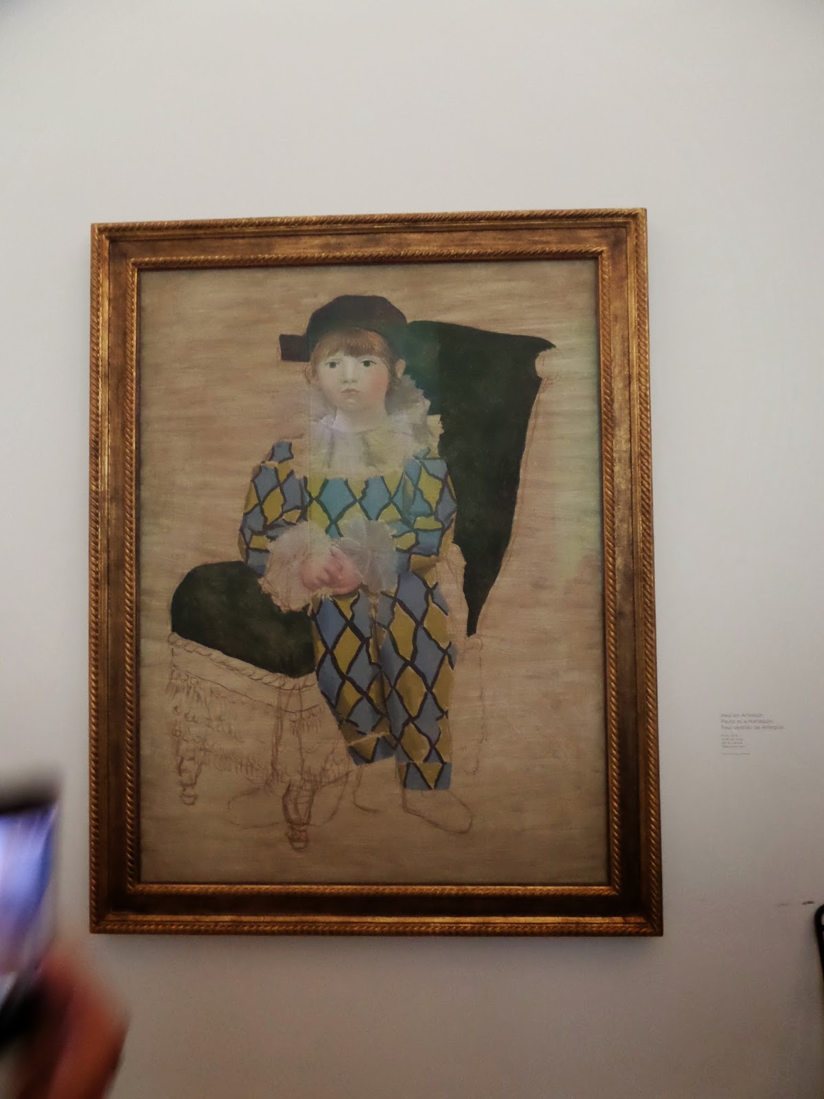 ピカソの息子のポール。じっとしてないのでモデルとしては少年は不向き。足が3本あったりする。椅子の手前の足の右側にポールの足がデッサンではあった。私がピカソを「一回期性の芸術家」というのはこういうことでもある。そしてこの絵は未完成のようにも見えるがそうではないということが、これまた一回期性を尊厳する彼の主張なのであると考えた。
