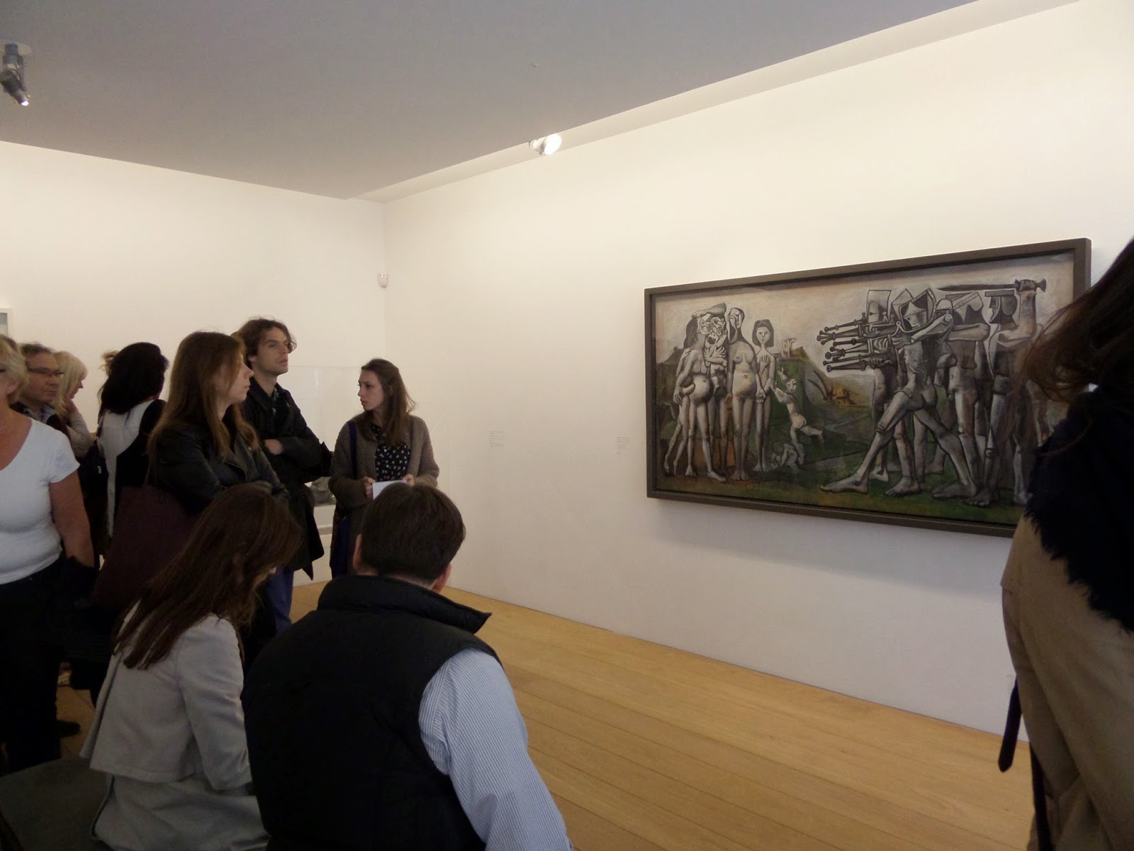 この絵の前に観客は一番多く集まっていたと思う。長い間時間をかけて見ていた人もいた。不思議なことに軍隊の暴挙に対する怒りよりも銃殺され殺害される婦女子への想いが強く感じられそこに平和に対する切望の共感がおこる絵だ。頭をたれて目に涙をたたえている若い女性が観客の中にいた。
