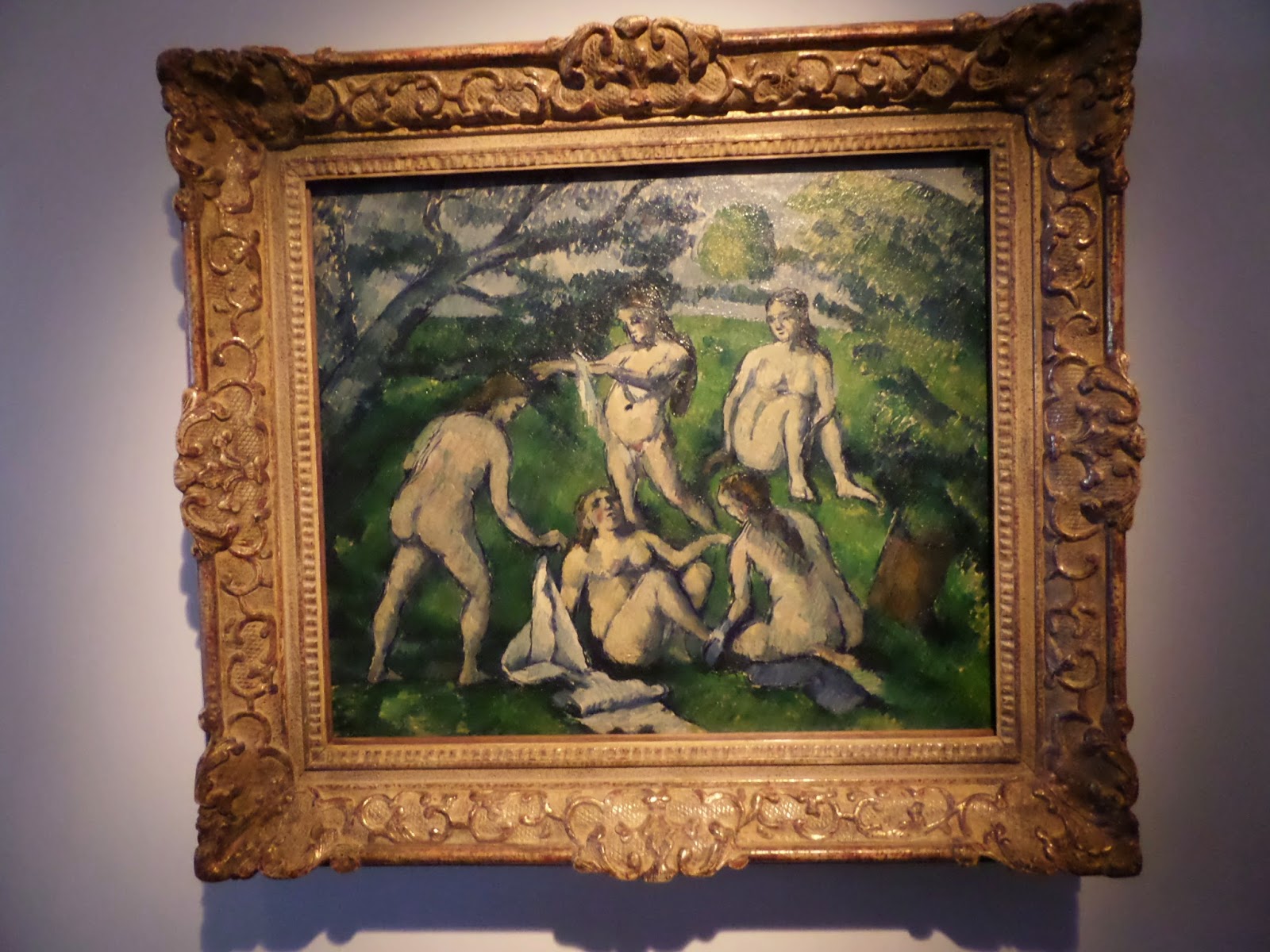 セザンヌの水浴は安定した三角形構図で有名だ。三角形を複数に配することで膨らみや厚み奥行きの立体空間を実現している。遠近法の視覚焦点主義の窮屈さから開放された人間の自由な眼でえがかれている。