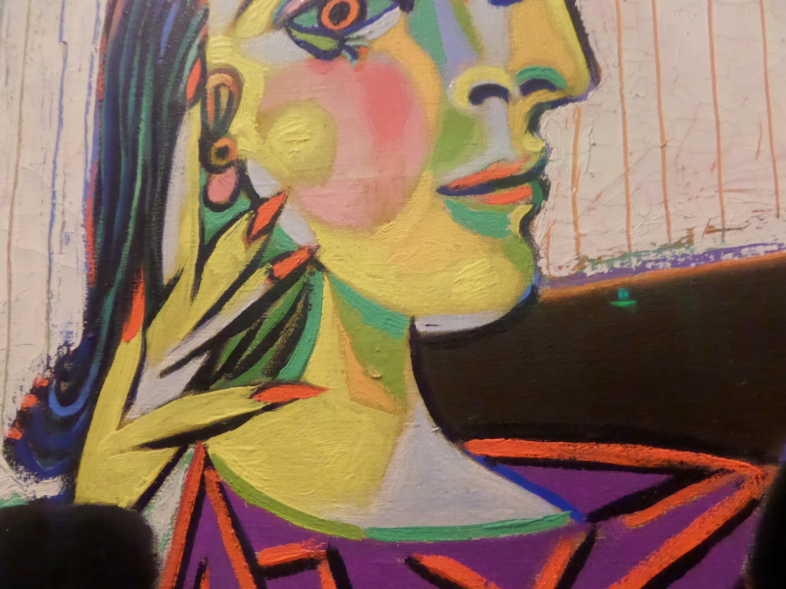 マリーテレーズの肖像だと思う。印象派の色彩分割理論やおそらくは幾何学文様などの組み合わせで不思議性を創出した。両眼の位置や手を変形させることで内面の精神性を演出させている。しかもそれにはモデルは女性のほうが好都合なのは当然である。逆にそこに芸術での性的差別があるのであろうがピカソはこれをあえて問うことはしなかったようである。