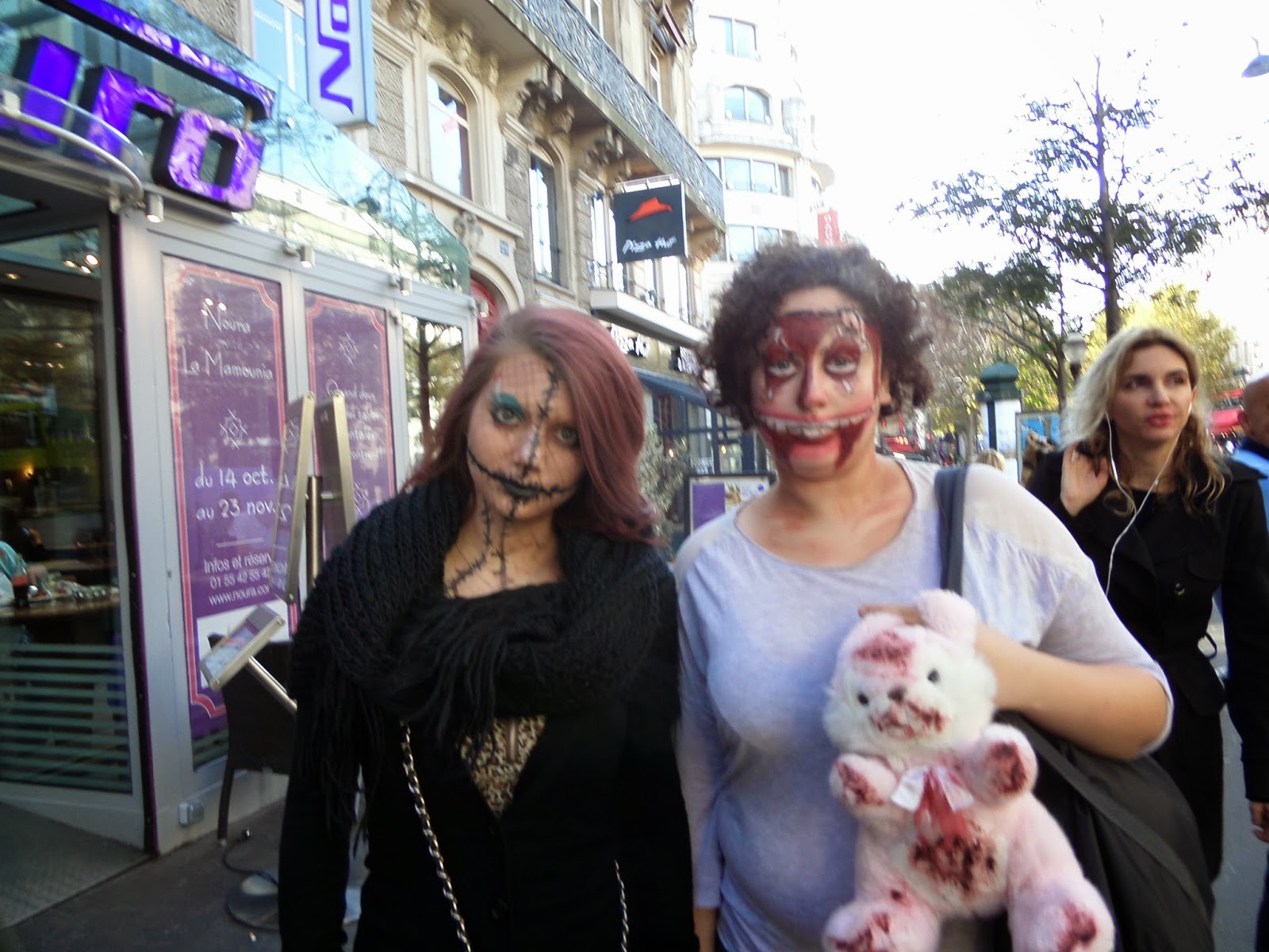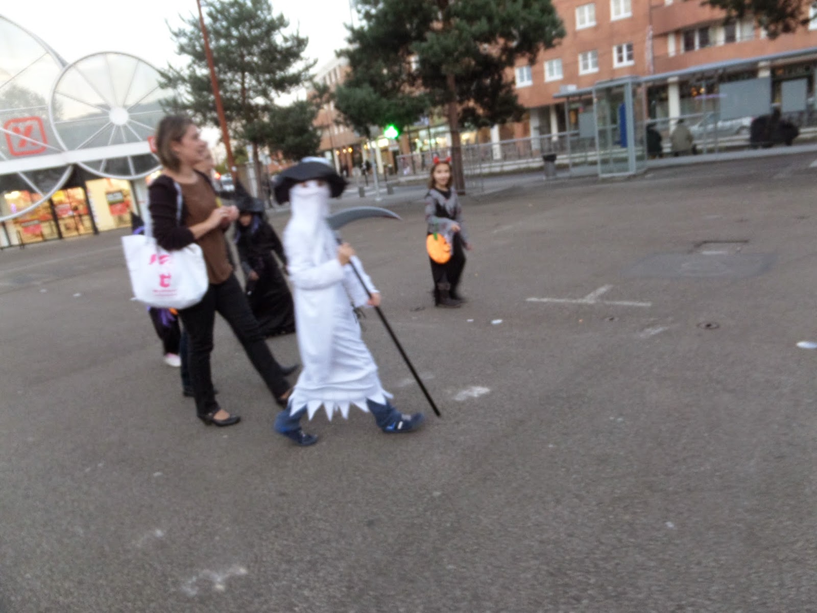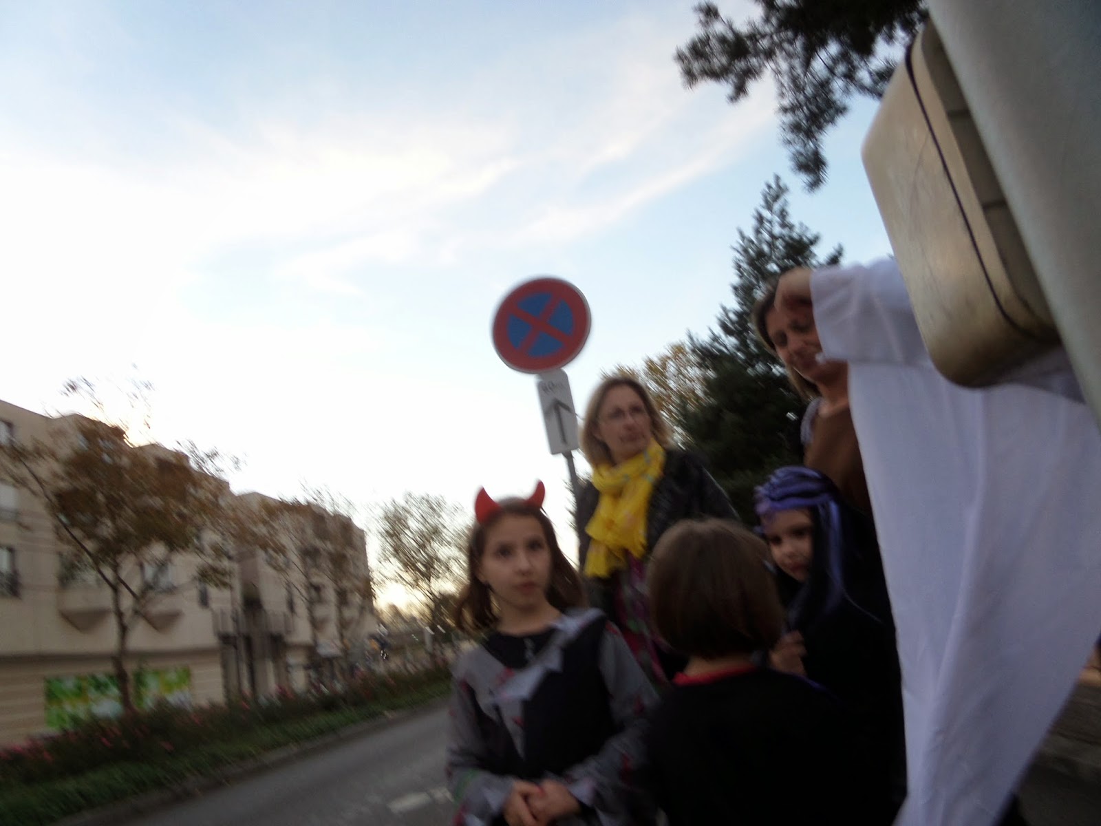 パリで何人かに質問すると、ハロウィーンは悪い考えを追払うのだという。翌日のトーサンの万聖節の墓参りの習慣とは関係ないだろうと思うと答えが返ってきた。息子さんと父親の二人ずれが花屋の前で墓前に供える菊の花を選んでいたので聞いてみた。そのためか子供たちが黒いマントーをつけて吸血鬼や妖怪の仮面を被り、長い柄の草刈カマを持っていたことでわかった。その子供の手に持ったプラスチック製の大きな草刈カマの刃の部分には赤い血がついていた。一緒にいた母親にこのカマで人を殺害したのか?と問い糾すと、悪魔を退治したのですということだ。それにしても恐ろしい情景が浮かぶ。