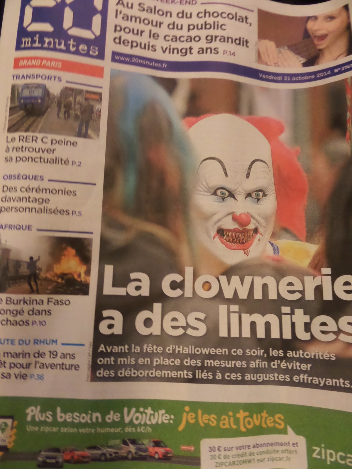 現代フランスではあまり人気がないのは当然だろう。フランスではハロウィーンは定着しなかった。しかし今年はクルーン(道化)の仮面を被った青少年の犯罪が次第に激化して大人が道化の仮面をつけた事件で注目されたこともあってか、10月31日のハロウィーンは今までの人気のなさを大きく覆すことになった。