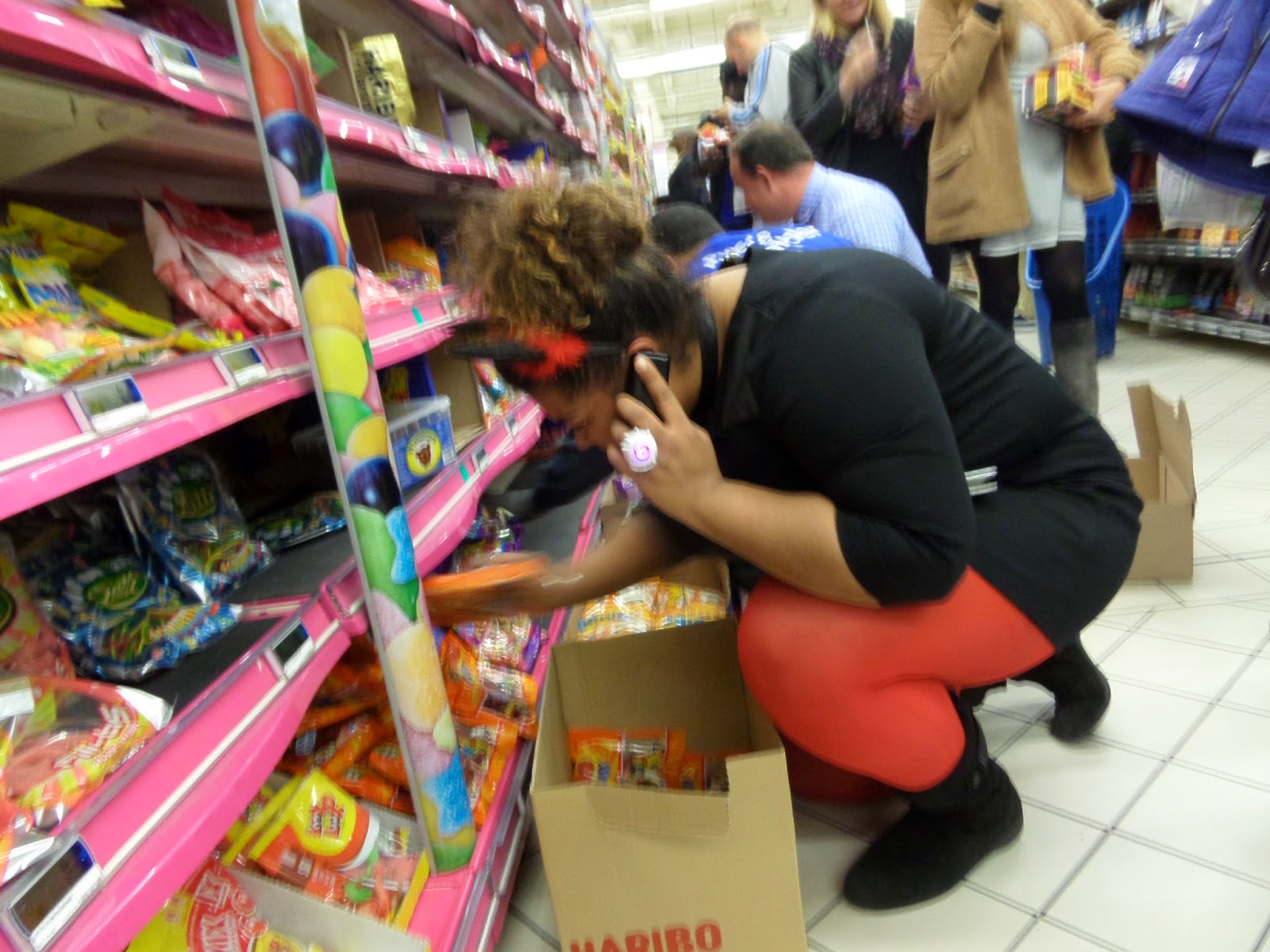 このハロウィーンが悪魔祓いの祭りであるためか、大手スパーの店員も頭に角をつけたり、悪魔のような化粧の扮装をしたりしてい。