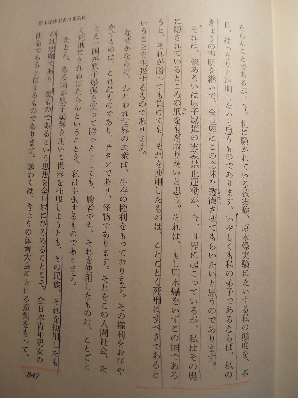 これは、池田の師である戸田城聖が「原子爆弾を使用する者はサタンでありすべて死刑に処するべきである」との遺訓を残したが、池田はその意味がよくわからなかったのである。この戸田の宣言の通りならば、反戦・反核の平和団体だった筈の創価学会・公明党の責任者は、原発基地を許し戦争法案を許すわけだから彼らはすべて処刑されなければならないことになるだろう。
