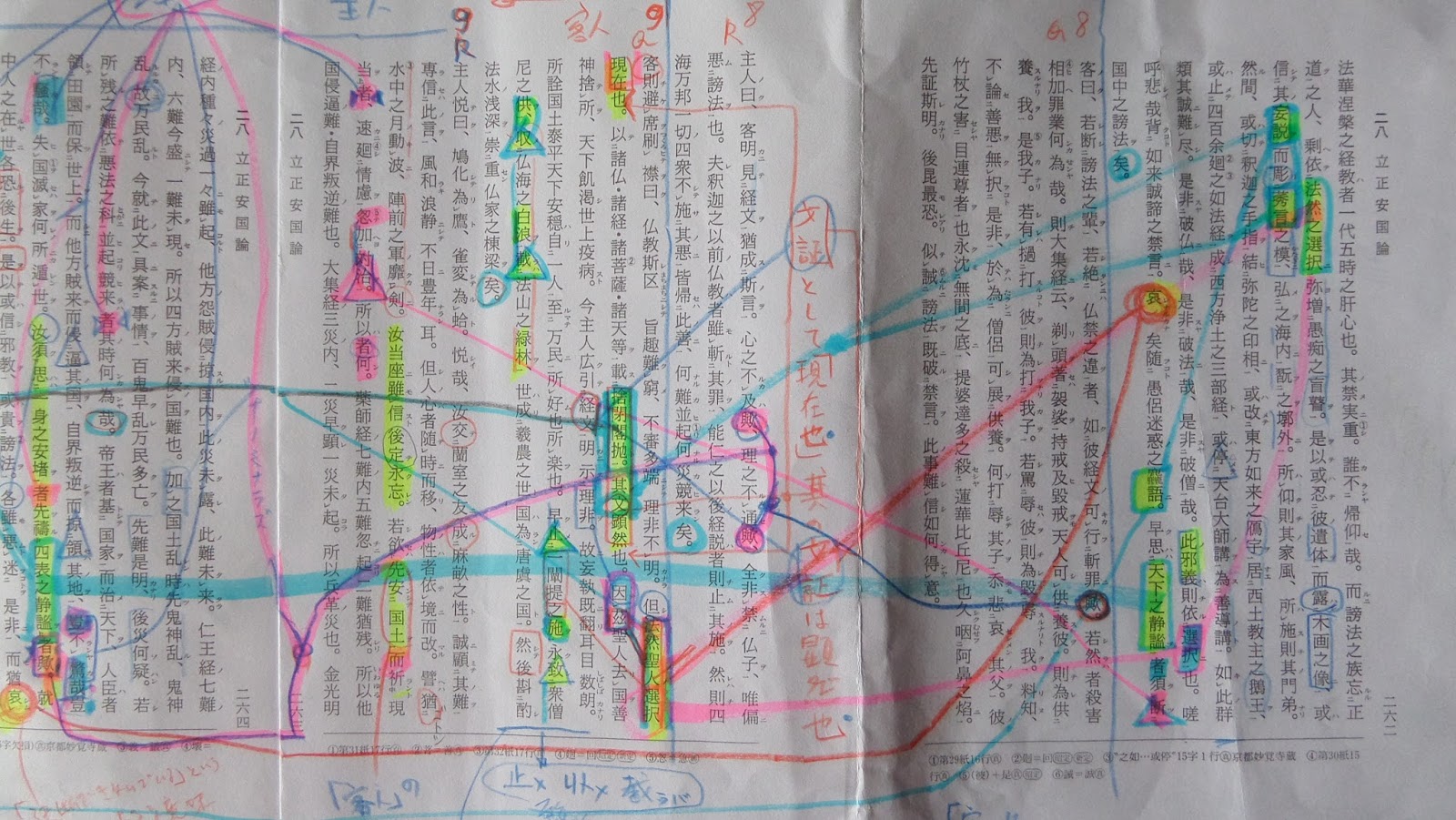 問題は、今回見たフランス語訳などでは、この第10番目が第9番目に編集混入されていて、「先達之詞」の「詞」 が「選択集」を指さずに別のものに訳されている。これでは折伏はできないのであるということである。今回ここに掲載した日蓮大聖人の「立正安国論」は漢文である。この方がよく理解できることがわかると思う。ゆっくりと話しの持ち主が誰であるのかを、つまり「主人」 なのか「客人」なのかを、一つ一つ確認していくことで第九段目の終わりの「此詞此言」というのは何を指しているかがわかる。