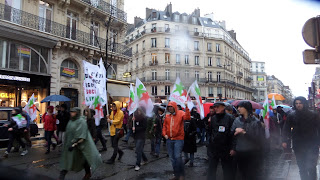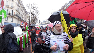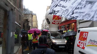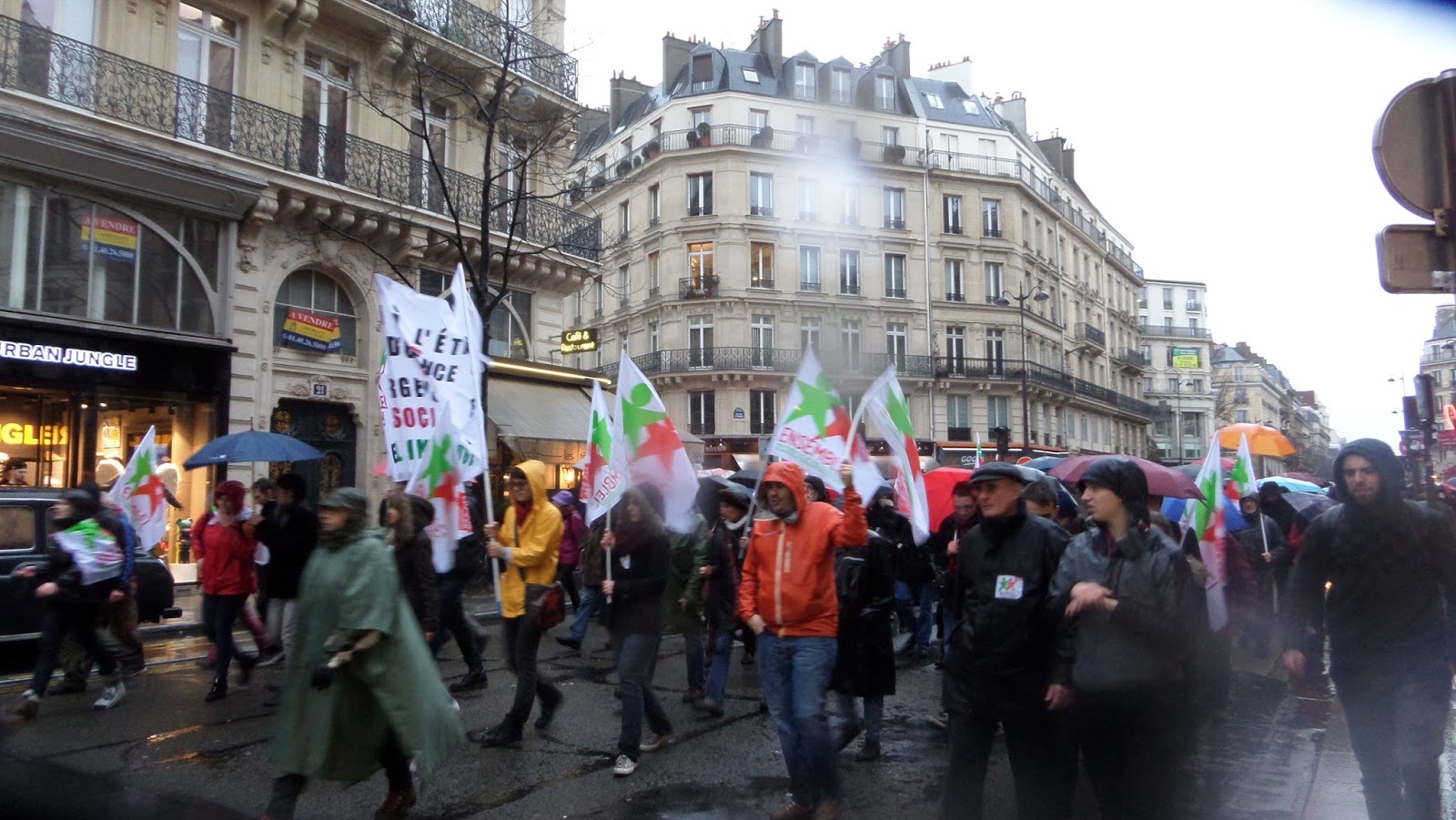パリでは午後2時半から共和国広場から抗議デモが開始され南西へ走るチュルビゴー通りを下り、エチエンヌ・マルセル通りの大きな通りを抜け、国立フランス銀行前のヴィクトワー広場から狭い通りのプチ・シャン通りを行進し、旧国会図書館前で左折しリシュリー通りをモリエールのコメディ・フランセーズまで出て、ルーブル美術館前の国家審議会で終わった。雨の中にも関わらず多くの参加者がありデモは大成功だとの声が多かった。
