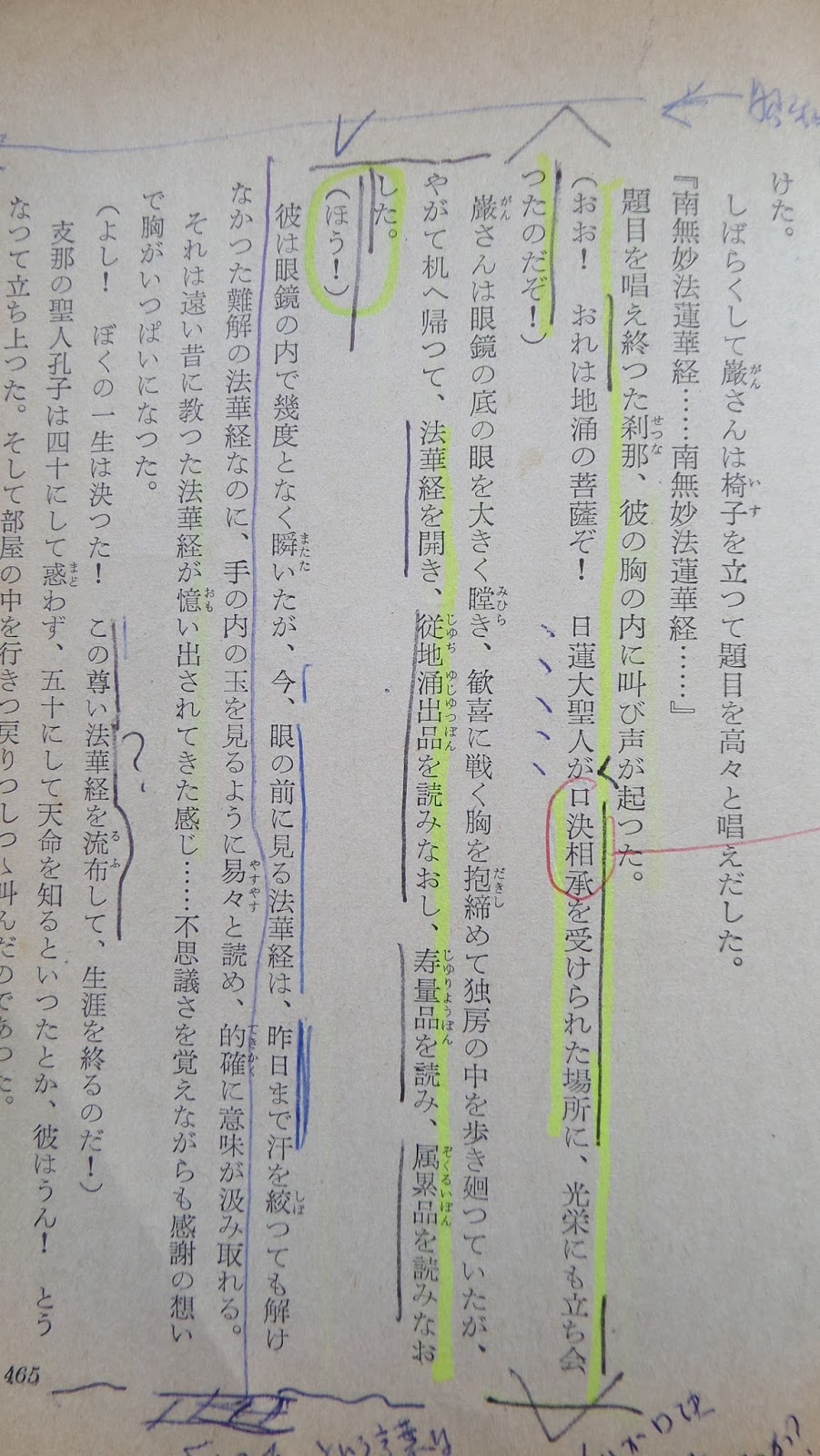 正確ではありませんが、次のような言葉を考えていました。根を切られた江南の橘(たちばな)の淮北(わいぼく)に移されて自然に枳(からたち)となりけるも身の上につみしられたり。そして、「我等衆生法華経を信じ奉るは根をつけたるが如し」という文でした。私は「此の法華経」を信じていたために、いつも根をつけて生き延びてこれたのだと思います。
