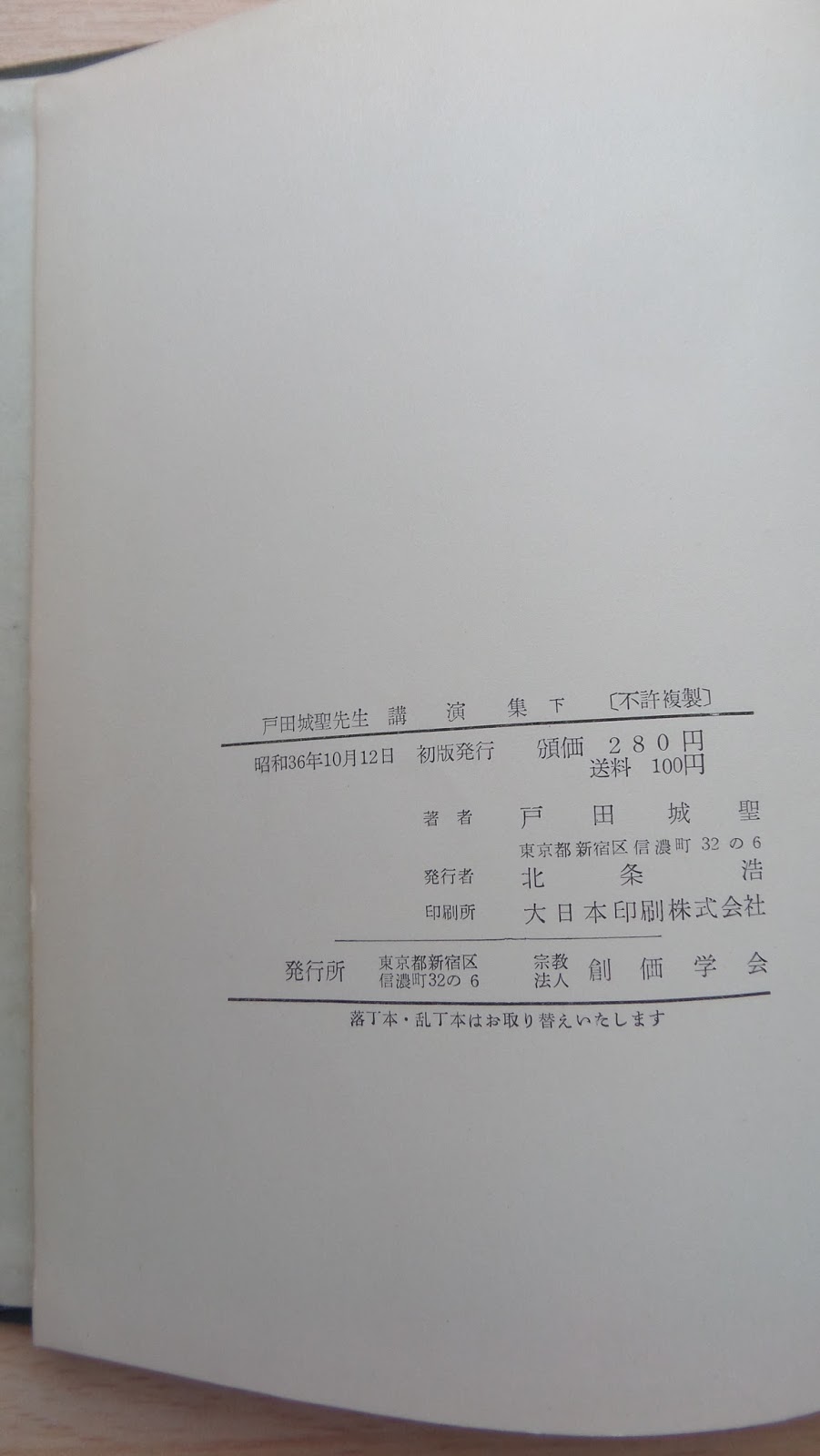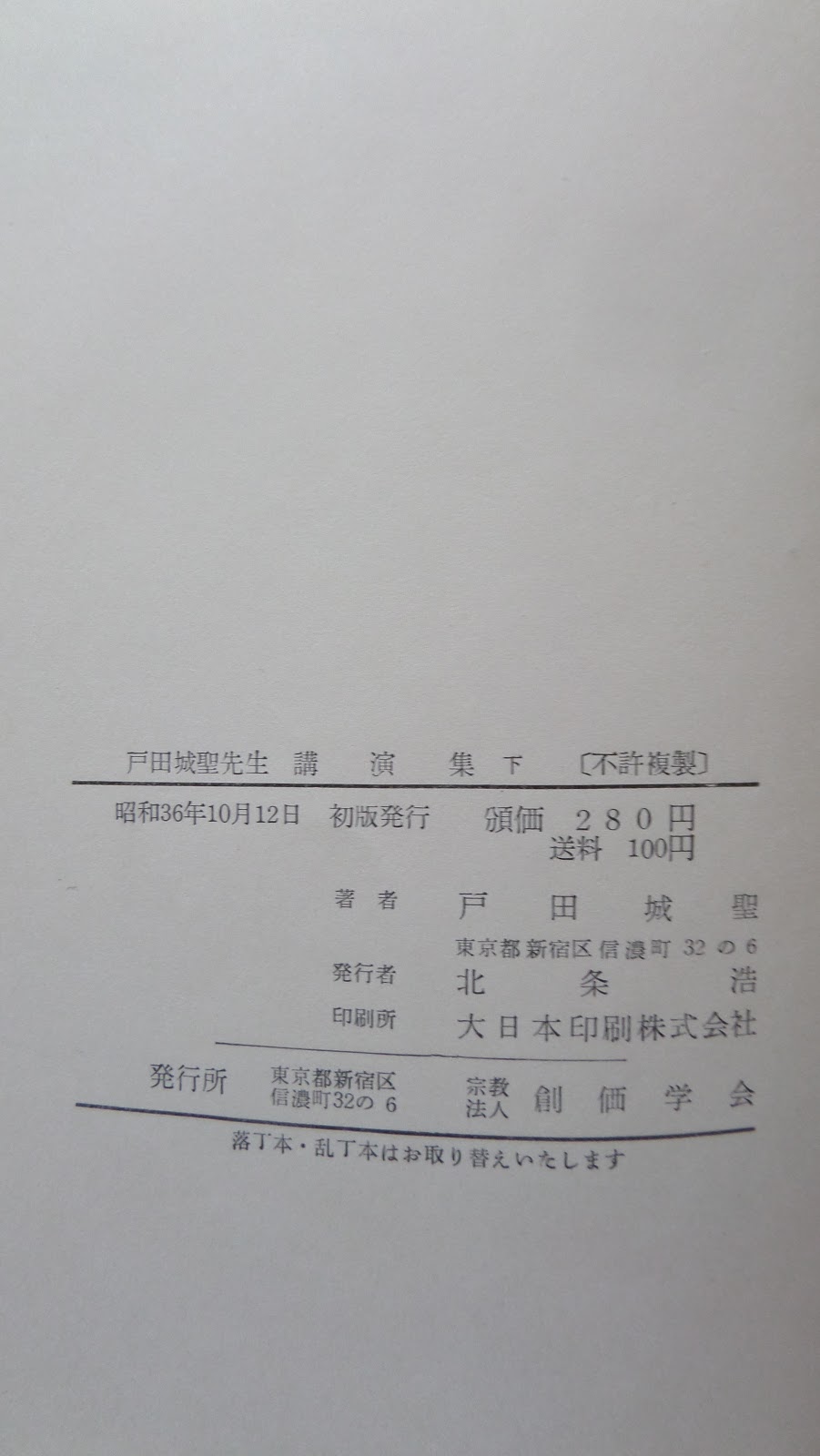 それが6頁ほど書いてある本「戸田城聖先生講演集 下」(昭和36年10月12日初版発行 発行所 創価学会 373頁-378頁)があるのです。